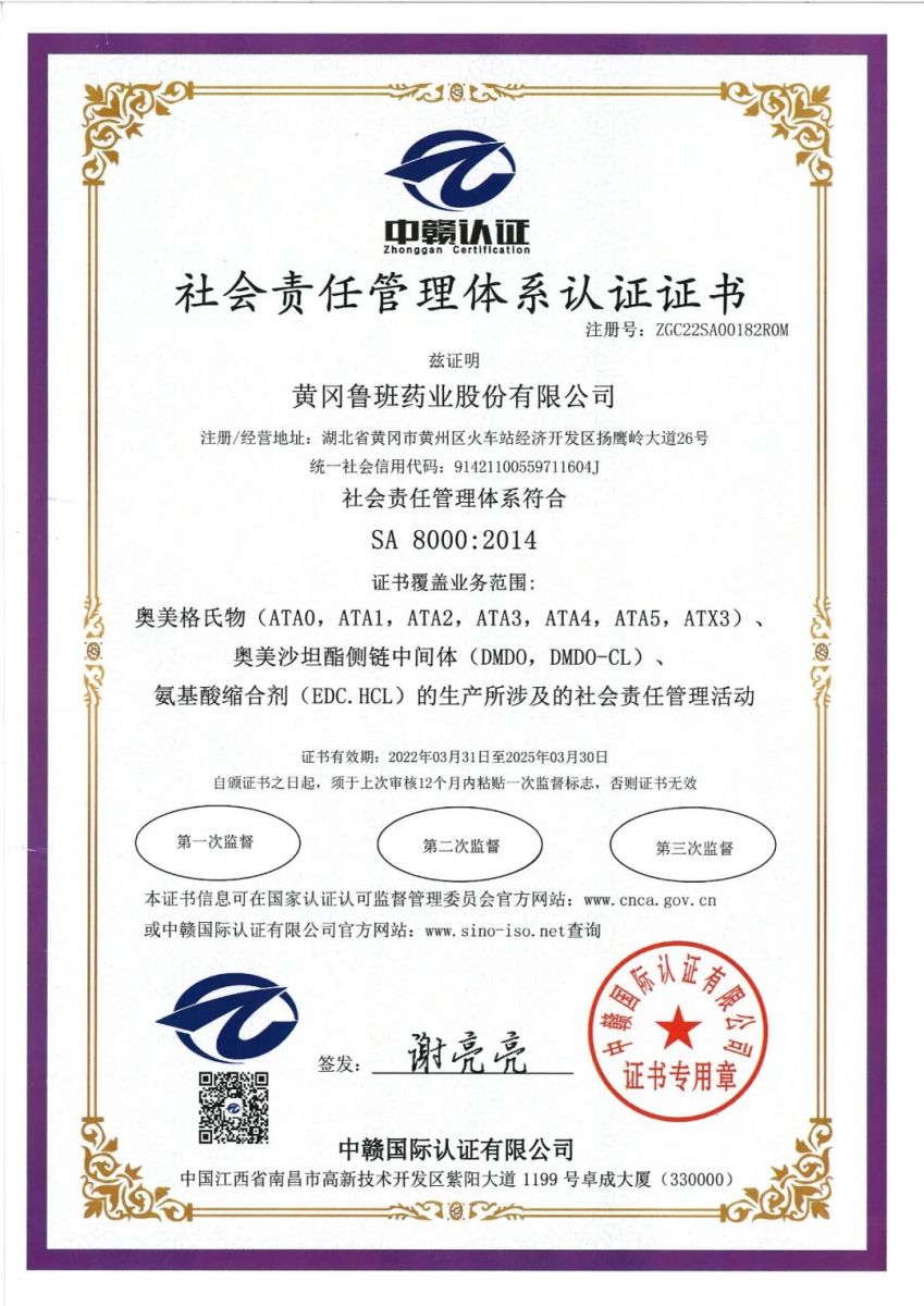 黃岡魯班藥業(yè)股份有限公司成功通過SA8000:2014社會責(zé)任管理體系認(rèn)證