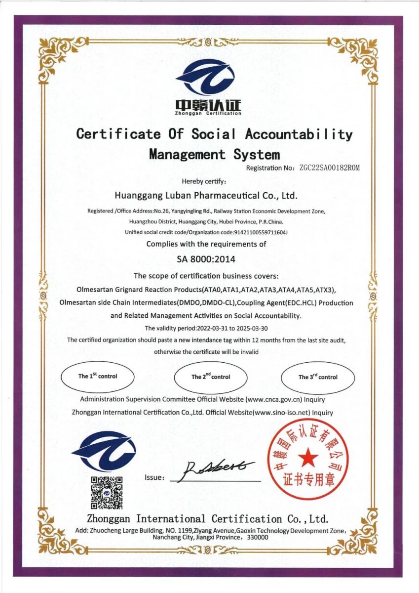 黃岡魯班藥業(yè)股份有限公司(以下簡稱“公司”)通過了SA8000:2014社會責(zé)任管理體系審核認(rèn)證,并于近日獲得了該體系認(rèn)證證書。